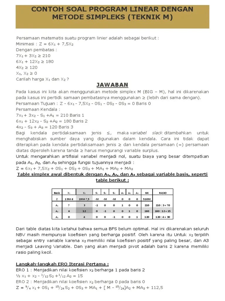 Soal Cerita Metode Simpleks - Contoh Soal Cerita Metode Simpleks Maksimum 3 Variabel Bagikan Contoh - Contoh soal cerita metode simpleks maksimum 3 variabel bagikan contoh from bagikancontoh.blogspot.com.. metode simpleks digunakan untuk mencari nilai optimal dari program linier yang melibatkan banyak constraint (pembatas) dan banyak variabel (lebih dari dua variabel). Untuk menyelesaikan permasalahan tersebut dengan metode simplex, kita harus memformulasikan kembali permasalahan tersebut sesuai dengan standard simpleks. metode simpleks dikembangkan oleh george dantzing pada tahun 1947. Persamaan matematis suatu program linier adalah sebagai berikut : 6x 1 + 12x 2 ≥ 180.