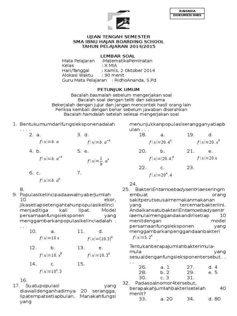Contoh soal matematika kelas 10 wajib tahun uas/pas 2020/2021 semester 1 & 2 beserta kunci jawabannya/cara pembahasanya kurikulum 2013 nilai .